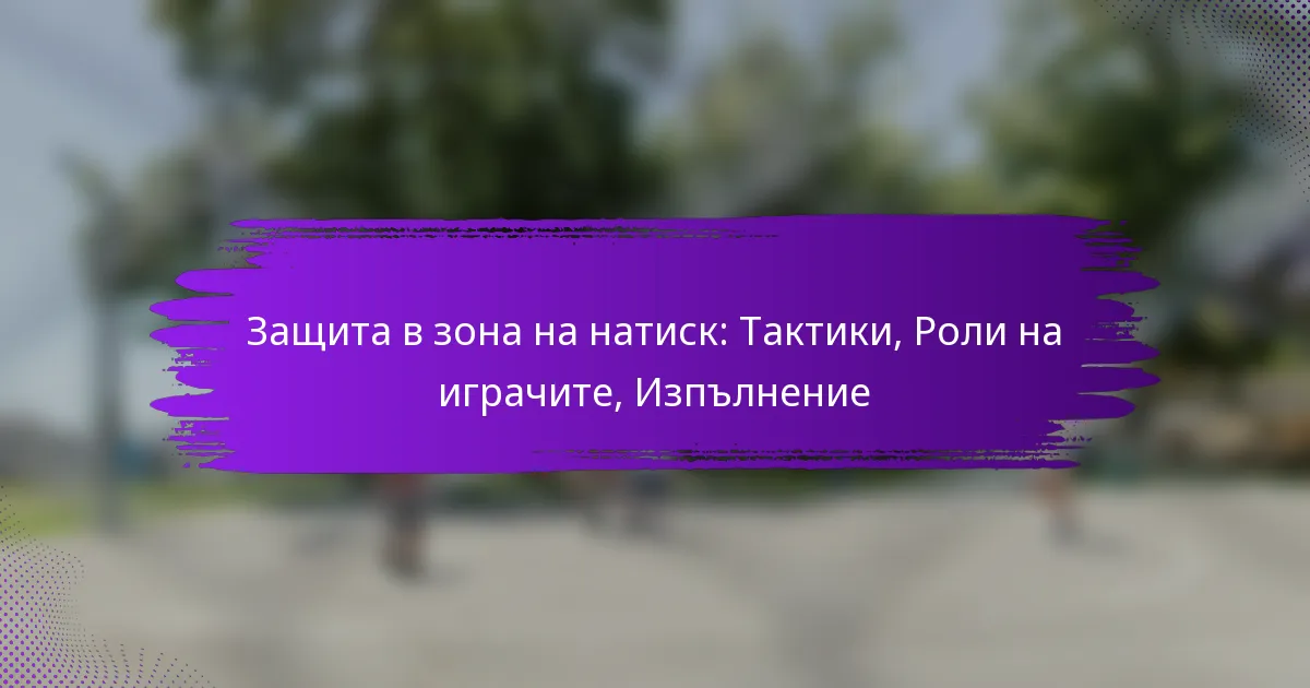 Защитата в зона под натиск е проектирана да покрива специфични области на игрището, като същевременно прилага натиск върху играча с топката. Играчите са назначени да пазят зони, а не индивидуални противници, което им позволява да предвиждат подавания и да intercept топката. Тази защита изисква бързи ротации и комуникация между съотборниците, за да реагират ефективно на атакуващите движения.